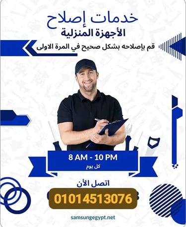✔ خبرة في صيانة الغسالات، الثلاجات، التكييفات، غسالات الأطباق، الشاشات، والميكرويف.