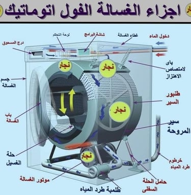تتكون الغسالة المنزلية من مجموعة مترابطة من الأجزاء الميكانيكية والكهربائية التي تعمل معًا لتنفيذ دورة الغسيل بكفاءة عالية. فهم مكونات الغسالات بالتفصيل يساعد في معرفة طريقة التشغيل الصحيحة، واكتشاف الأعطال مبكرًا، وتقليل الحاجة إلى تدخل فني صيانة غسالات بشكل متكرر. سواء كانت الغسالة أوتوماتيك، نصف أوتوماتيك، أو تحميل أمامي، فإن معظمها يعتمد على نفس المكونات الأساسية مع اختلافات بسيطة في التصميم.
