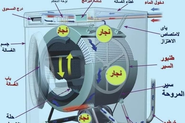 إن معرفة مكونات الغسالات بالكامل تساعد في فهم أسباب الأعطال الشائعة مثل الغسالة لا تعصر، لا تسحب ماء، تصرف المياه باستمرار، تهتز بقوة، أو لا تعمل نهائيًا. الاهتمام بالصيانة الدورية وفحص الأجزاء الحيوية يساهم في إطالة عمر الجهاز وتقليل تكاليف صيانة غسالات على المدى الطويل.
